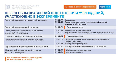 Однако проект направлен на профессиональное ориентирование и быстрое получение востребованных в регионе профессий. В связи с этим поступление по упрощенной системе возможно на конкретные направления в колледжи, участвующие в проекте.